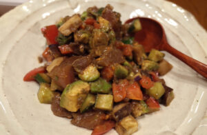 エビとトマトとショウガの炒め物は本格的な中華料理。そのほか2品ほどつくってくれた。人と食卓を囲む時は、ちゃんとした料理があると豊かな気分になるな。