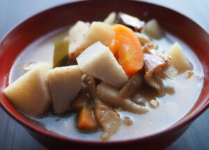 愛媛の芋たきは鶏肉でつくったけど、山形の芋煮は牛肉(仙台は豚肉)。ネットのレシピでは昆布や煮干しなどのだしを使わないが、入れた方が汁はおいしいと思う。格安米国牛ではなく、もう少しいい肉を使えばよかった、と後悔。