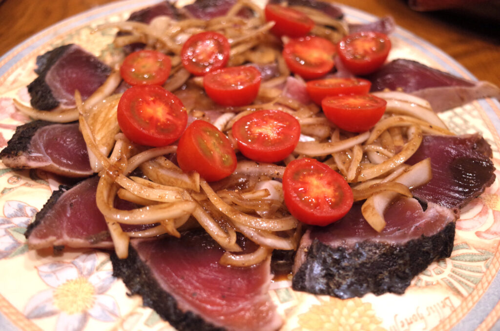 しょうゆ味のカルパッチョ 2025 10/07 鬼コーチ家事道場 2025年10月7日 ▽材料 (2人分)・カツオやアジ刺身 適量・玉ねぎ 1/6・ニンニクみじん切り 1かけ★オリーブオイル 大さじ2★醤油 大さじ1★みりん 小さじ2★酢(レモン) 小さじ2・ブラックペッパー(お好みで)・ミニトマト 6個 ▽作り方①カツオは食べやすい厚さに削ぎ切りにし、皿に並べる。②玉ねぎを薄くスライスし、水にさらす。③★を混ぜ合わせておく。④カツオの上に玉ねぎをのせ、★をかける。トマトや黒胡椒をトッピング。 鬼コーチ家事道場 よかったらシェアしてね! URLをコピーしました! URLをコピーしました! フグの子のポテトサラダ 卵入り 里芋とアボカドサラダ この記事を書いた人 reizaru 関連記事 ゴーヤとピーマンのキンピラ251009 2025年10月9日 鶏むねとにんじんのオイスター炒め 2025年10月9日 人参とニラのナムル 2025年10月9日 豚肉とナスの照り焼き 2025年10月9日 里芋とアボカドサラダ 2025年10月9日 フグの子のポテトサラダ 卵入り 2025年10月7日 タラのあらとジャガイモのトマト煮 2025年10月7日 シシトウと豆腐チャンプルー 2025年10月7日 コメント コメントする コメントをキャンセルコメント ※ 名前 ※ メール ※ サイト