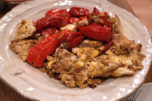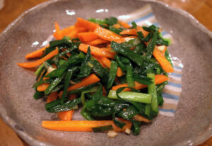 ゴーヤとピーマンのキンピラ251009 2025 10/09 鬼コーチ家事道場 2025年10月9日 ▽材料(4人分)・ゴーヤ 1本・ピーマン 4個・醤油 小さじ2・酒 小さじ2・みりん 少々・鰹節 1パック ▽作り方①ゴーヤは縦半分に切り、スプーンで種と綿を取る。3ミリくらいの薄切りにして塩(分量外)でもむ。10分ほどおいてさっと洗う。 ②ピーマンは縦半分に切り、種を取る。縦に3ミリくらいに細切り。 ③フライパンに油をひき、ゴーヤとピーマンを炒める。全体に油が回ったら、醤油・酒・みりんを加える。 ④汁気が飛んだら鰹節を加え、混ぜ合わせる。 鬼コーチ家事道場 よかったらシェアしてね! URLをコピーしました! URLをコピーしました! 鶏むねとにんじんのオイスター炒め この記事を書いた人 reizaru 関連記事 鶏むねとにんじんのオイスター炒め 2025年10月9日 人参とニラのナムル 2025年10月9日 豚肉とナスの照り焼き 2025年10月9日 里芋とアボカドサラダ 2025年10月9日 しょうゆ味のカルパッチョ 2025年10月7日 フグの子のポテトサラダ 卵入り 2025年10月7日 タラのあらとジャガイモのトマト煮 2025年10月7日 シシトウと豆腐チャンプルー 2025年10月7日 コメント コメントする コメントをキャンセルコメント ※ 名前 ※ メール ※ サイト