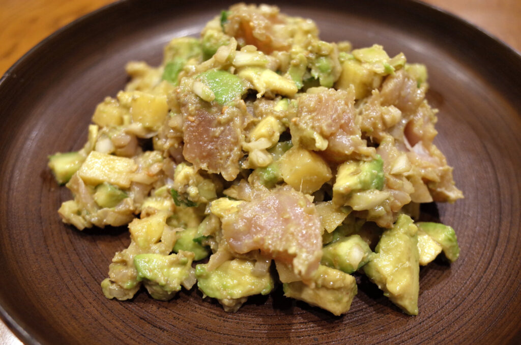①玉ねぎをみじん切り。アボカドとキュウリは1㎝角。