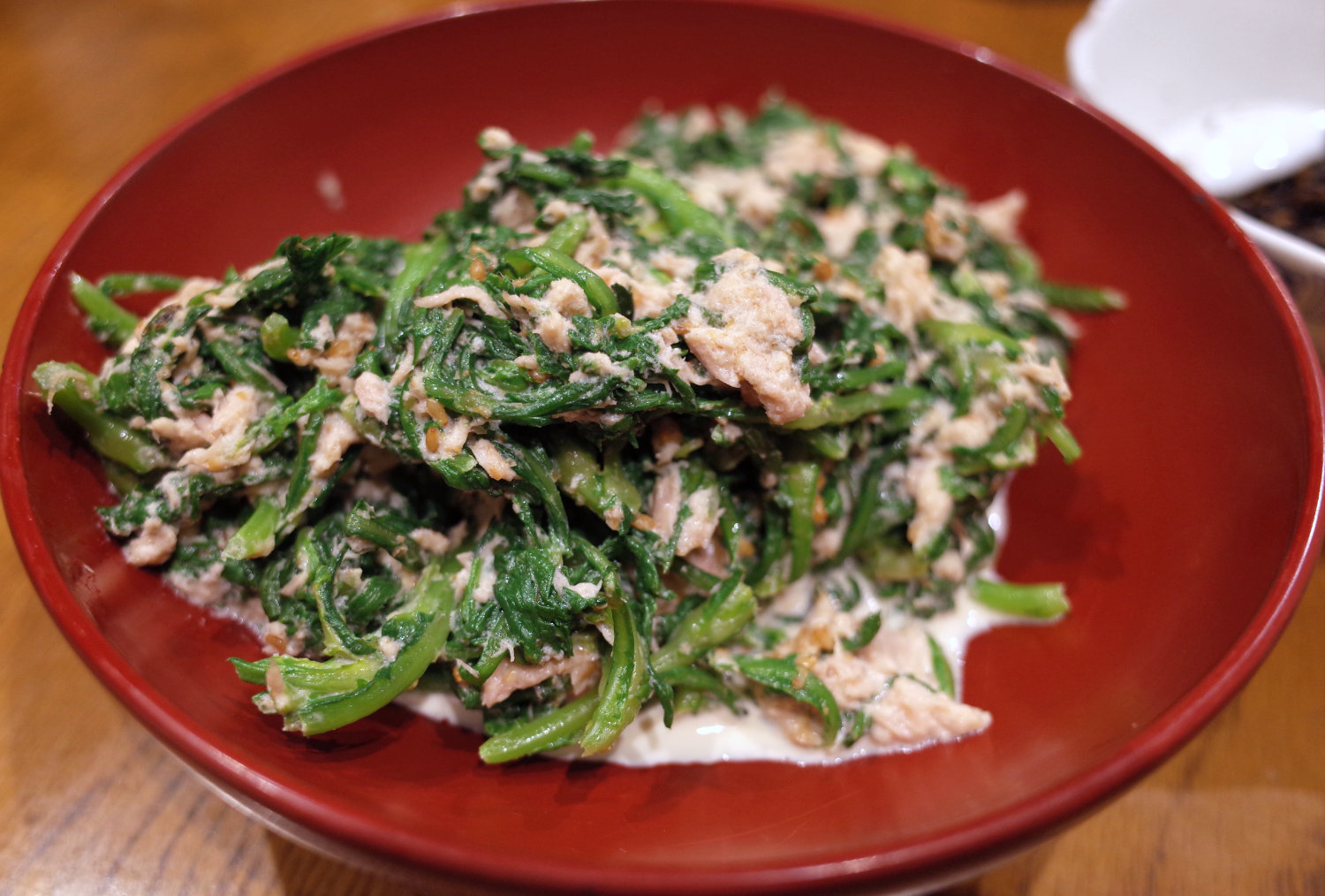 春菊ツナマヨあえ251108 2025 11/09 鬼コーチ家事道場 2025年11月9日 ▽材料(2人分)・春菊 1袋・ツナ缶 1缶★すりゴマ 大さじ1★めんつゆ 大さじ1~2★マヨネーズ 大さじ1~2★ごま油 少々★塩・こしょう 少々 ▽作り方①春菊は根元の固い所は切り落とし、よく洗い、さっと茹でる。 水気をよく絞って、3~4cmくらいに切る。 ②ボウルに①の春菊、オイルを軽くきったツナ、★を全部入れて混ぜる。 鬼コーチ家事道場 よかったらシェアしてね! URLをコピーしました! URLをコピーしました! 豆腐と野菜のごま油サラダ 鶏手羽元の参鶏湯風 この記事を書いた人 reizaru 関連記事 鶏手羽元の参鶏湯風 2025年11月9日 豆腐と野菜のごま油サラダ 2025年11月8日 生姜たっぷり豚肉大根 2025年11月8日 鶏むね肉と茄子の生姜味噌鍋2511 2025年11月7日 マグロとアボカドのハワイ風 2025年11月7日 チヌのアクアパッツァ 2025年11月4日 マグロのアラと大根煮 2025年10月29日 鶏胸肉の参鶏湯風 2025年10月29日 コメント コメントする コメントをキャンセルコメント ※ 名前 ※ メール ※ サイト