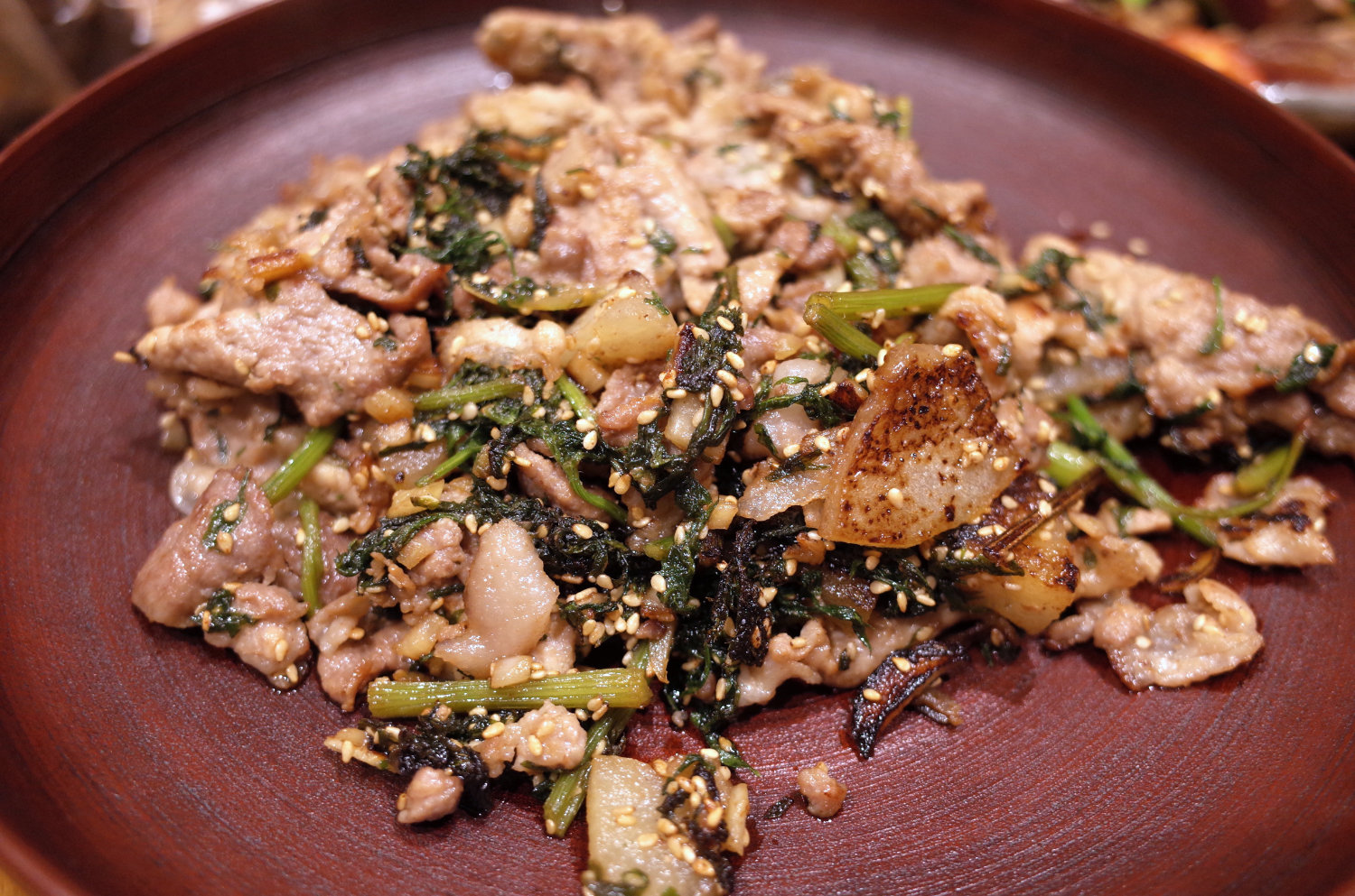 (人参の葉がかたいときは、茎部分を前もってレンジでチンするか、細かく切って炒める)