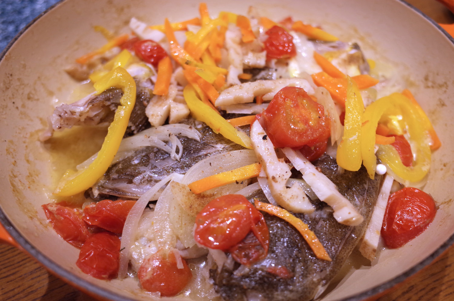 高級魚のコチのアラが298円! 和風にするか迷ったが、ワインにあうようにアクアパッツァに。あまった汁はパスタでもリゾット(おじや)でも。