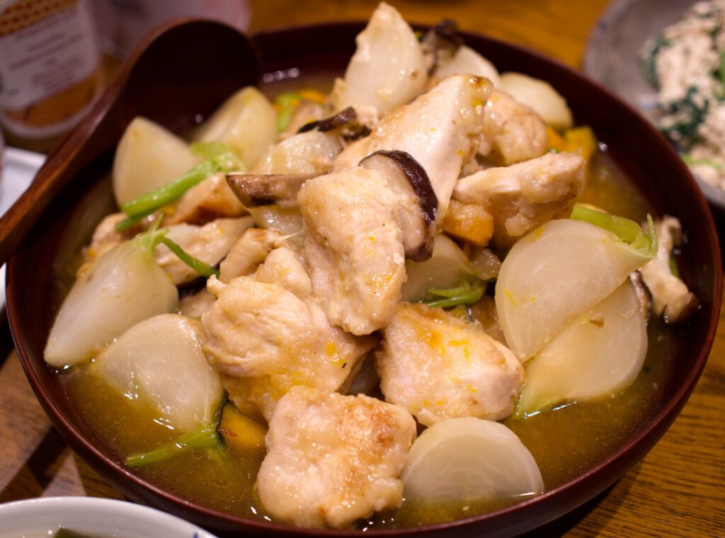 ⑥カブを入れ、☆を入れてまぜ、蓋をして、蕪が柔らかくなるまで煮る。
