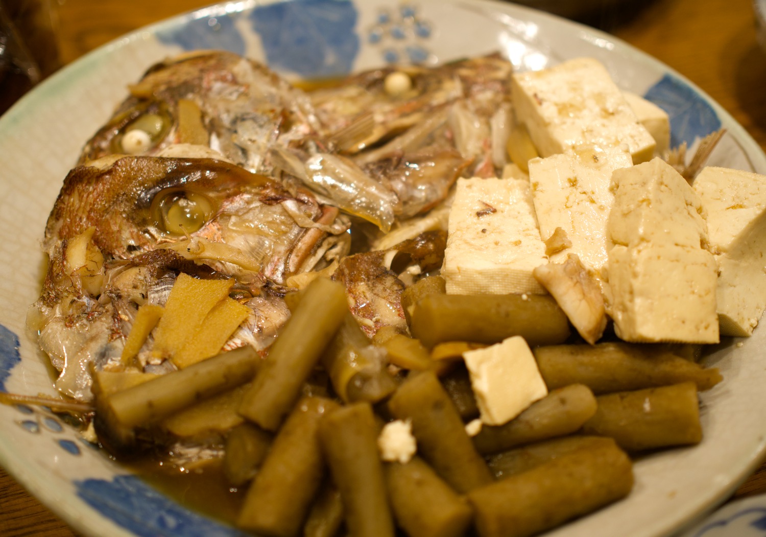 今回は2.5尾分の鯛の頭がある。1食では食いきれない。