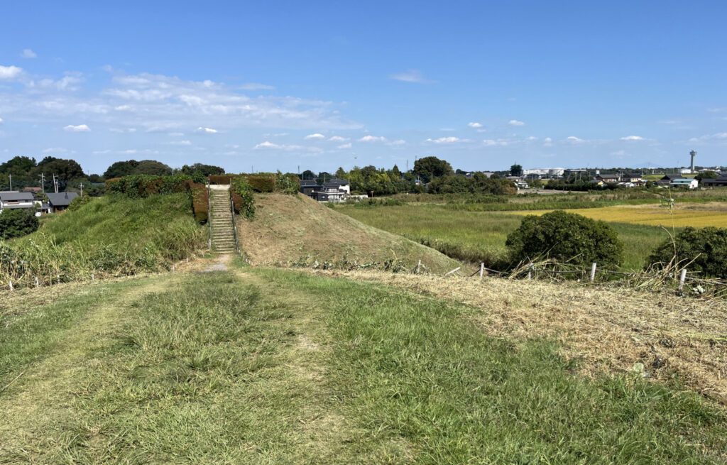 だだっ広い田畑を流れる元荒川をわたり、新幹線の高架と国道17号バイパスを地下歩道でくぐると、芝生のところどころに木々が生いしげる史跡公園があらわれた。