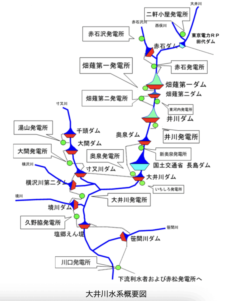 戦後になると次々にダムが建設され、大井川水系には現在32のダム・堰堤がある。大井川の水の大半は延長81キロにおよぶ導水管(トンネル)を流れるようになってしまった。