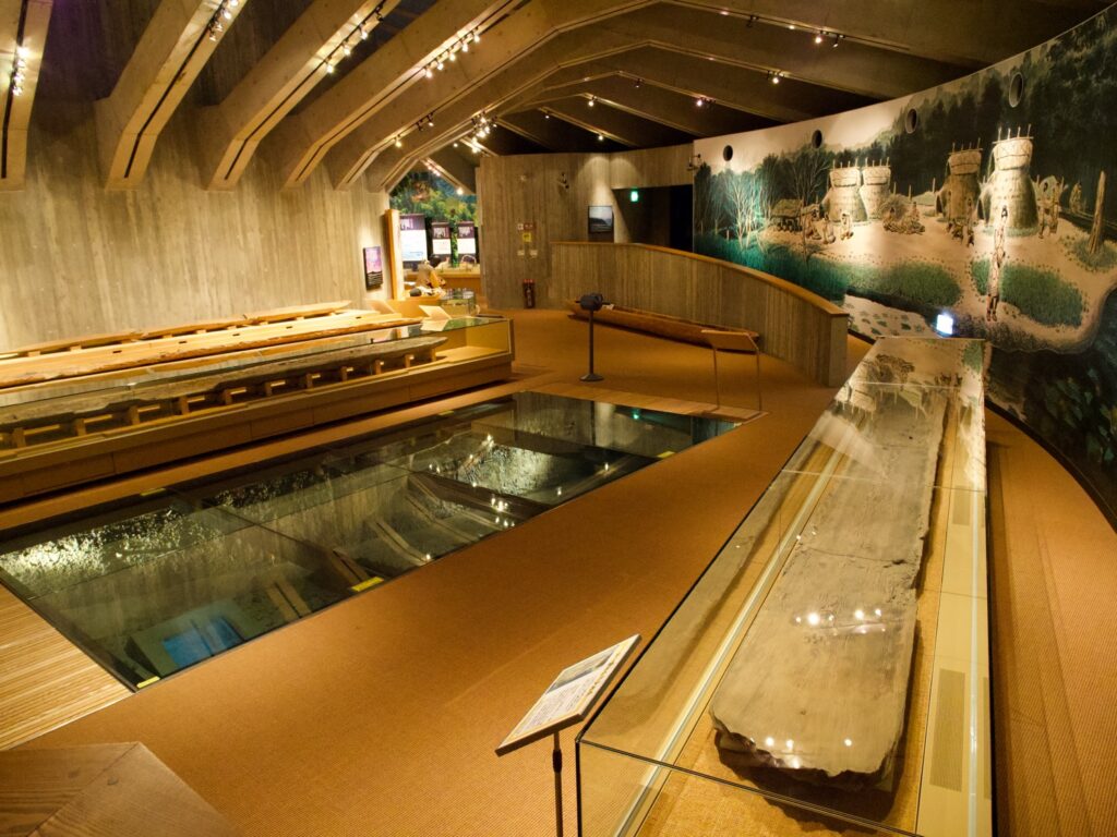 スギ製の丸木舟はわずか30ヘクタールの範囲から11艘出土した。琵琶湖とならんで全国最多という。湖から海につながり、丸木舟が行き交うムラだった。