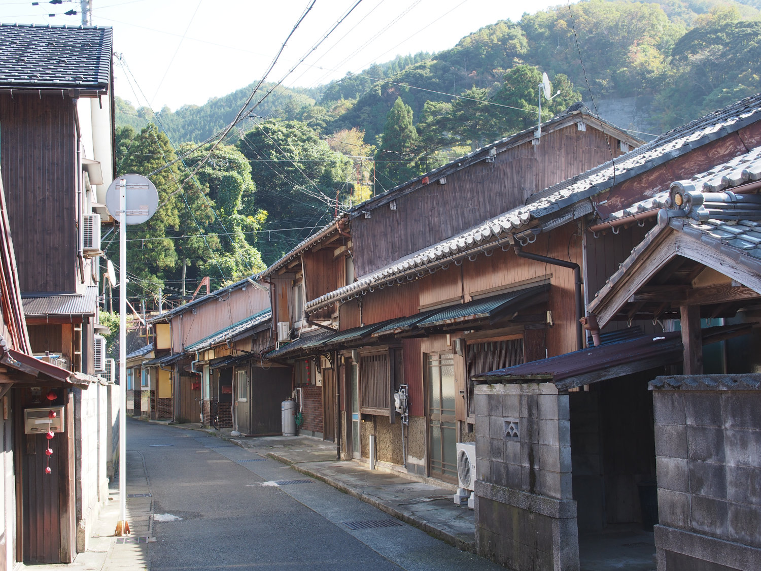 ここの突き当たりから、大原区には生活用品、お茶、米、魚屋、八百屋、大工、指物屋、髪結いさんがみなあった。娼妓さんはそこまではでられた。こっち側は、今は海辺の道になってたけど、この道もはいれしまへんでした。細い道をはいるようになっていた。娼妓さんはでられん。そこを出てしばらく行ったところに小さな川に橋がかかっていて、そこまででられた。娼妓さんも芸妓も送りだすときはそこまで行って「おおきに、さよなら、また来ておくれやっしゃい」って言いました。だからその橋を「さいなら橋」というんどす。娼妓さんはそこまでしかでられませんでした。