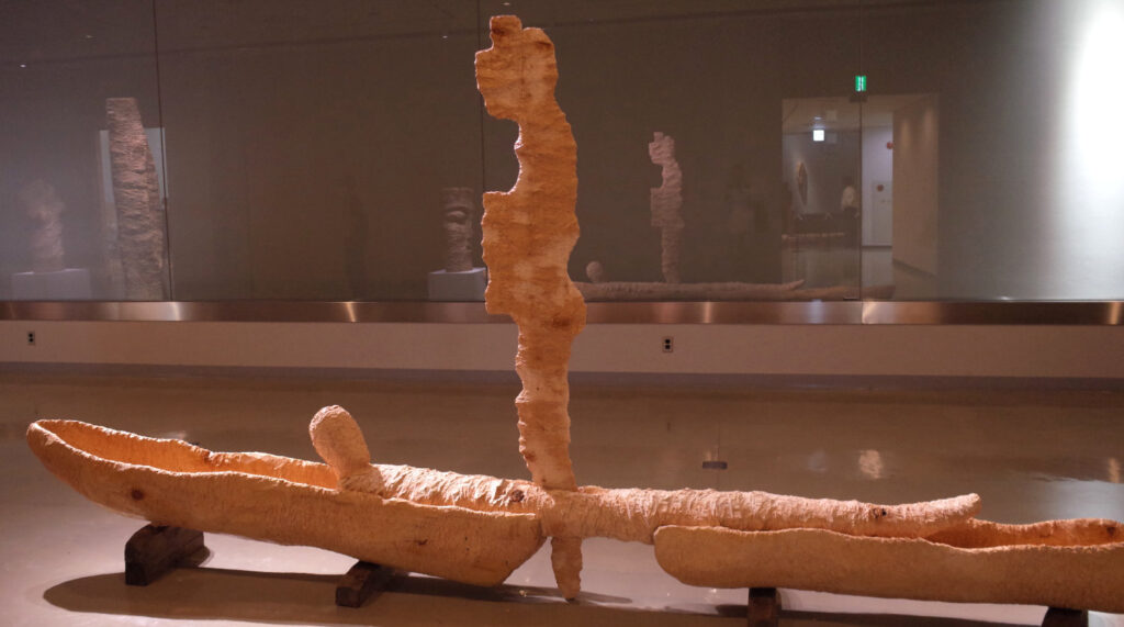 ノアの方舟のイメージだろうか。横たわる木像は死者であり、それが養分やエネルギーとなって新たな生命をうみだす。「約束の船」は、生命の循環をつかさどる地球のあり方なのかもしれない。