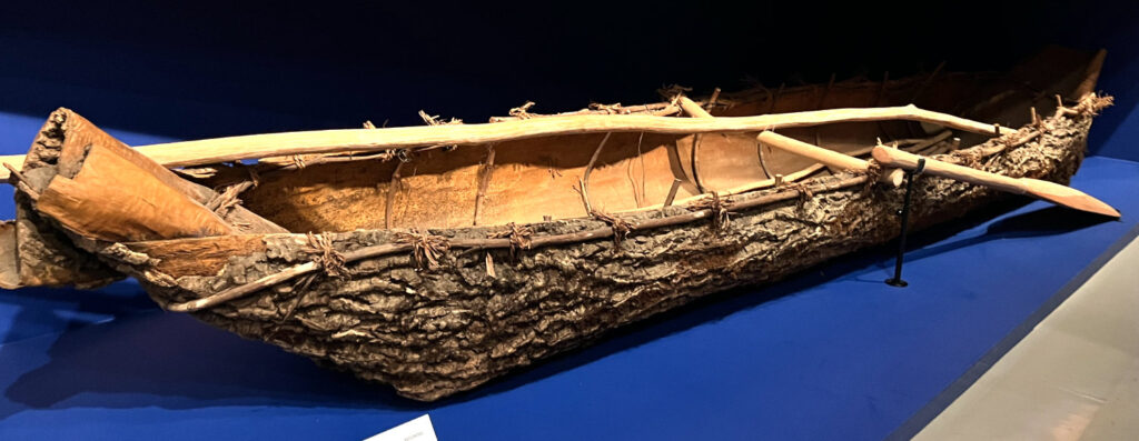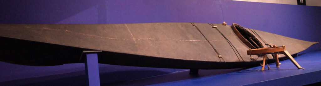 北洋のベーリング海峡をわたったのはカヌーだった。白樺樹皮やアザラシの皮がつかわれている。